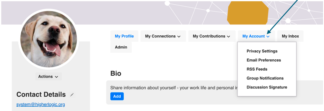 Profile from the main navigation bar, and use the Actions drop-down under the photo or avatar to select Change Picture. While updating your profile, take a moment to review your Privacy Settings (under the My Account tab on your profile) to ensure your profile visibility is set to your liking. By taking these simple steps, you'll be able to make meaningful connections with your peers and maximize the value of your Q Community membership.